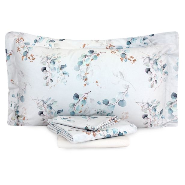 | Dimensioni | Lenzuolo sopra: 260x290 cm Lenzuolo sotto con angoli: 180x200 cm Federe: 52x80 cm |